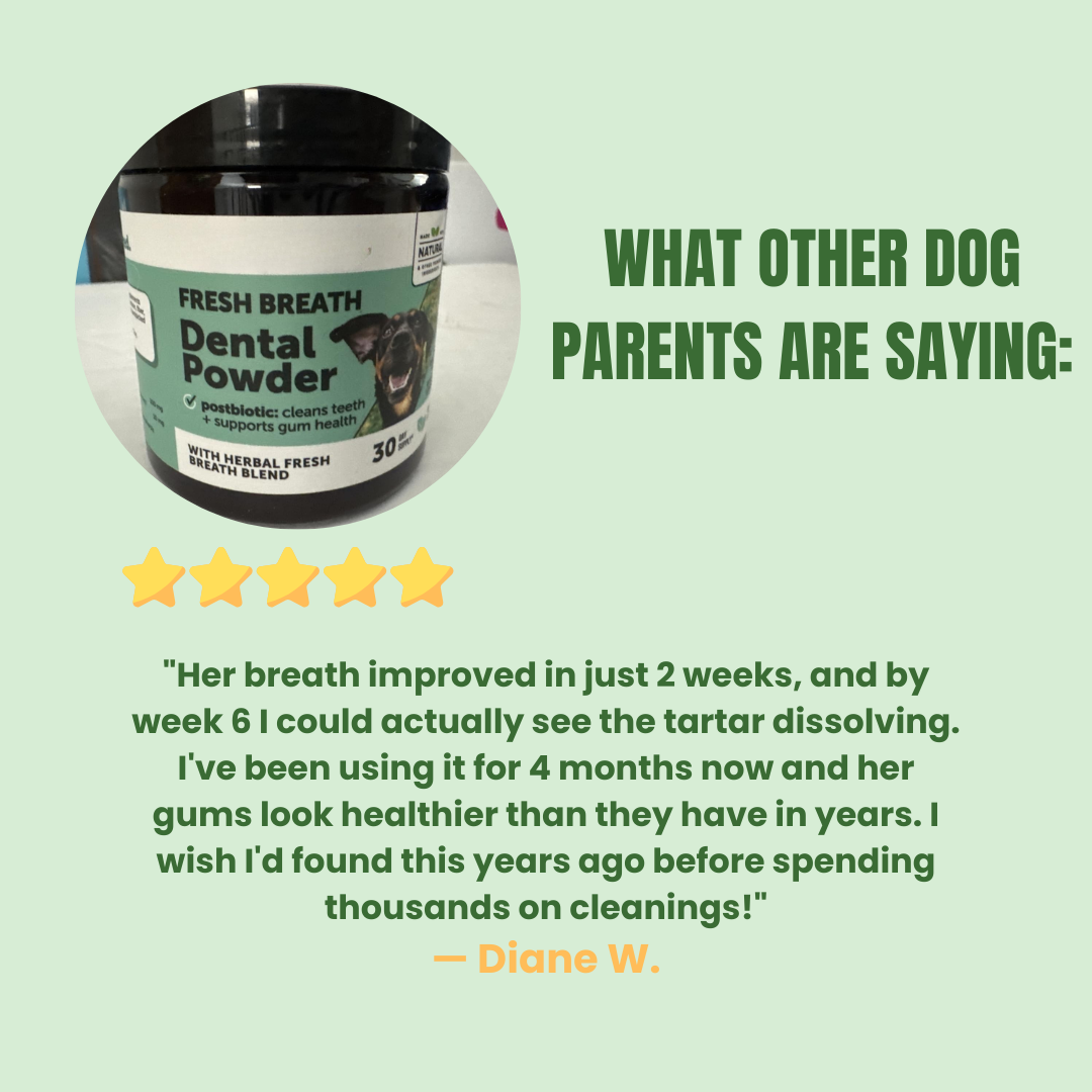 Was quoted close to $1,700 for a dental procedure. Since starting this powder two months ago, my dog's breath is completely fine and his teeth look so much better. Wish I'd found this two years ago.